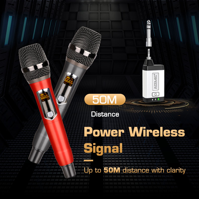 【Compatible with Multiple Devices】The portable wireless microphone is designed for devices with with 'MIC INPUT' (6.35mm (1/4") or 3.5mm (1/8") MIC input). Works with karaoke machine, mixer, singing machine, audio amplifier, PA system, powered speaker, voice amplifier, and more streaming Multimedia Equipment.