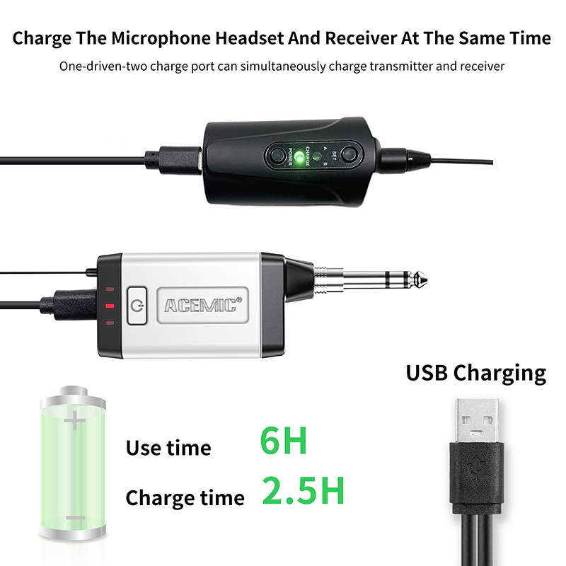【 Rechargeable System】The portable wireless lavalier microphone system is equipped with a rechargeable lithium battery, which can work for 6 hours after 2-3 hours charging, depending on the intensity of use. The USB Type-C port enables ultra fast charging.