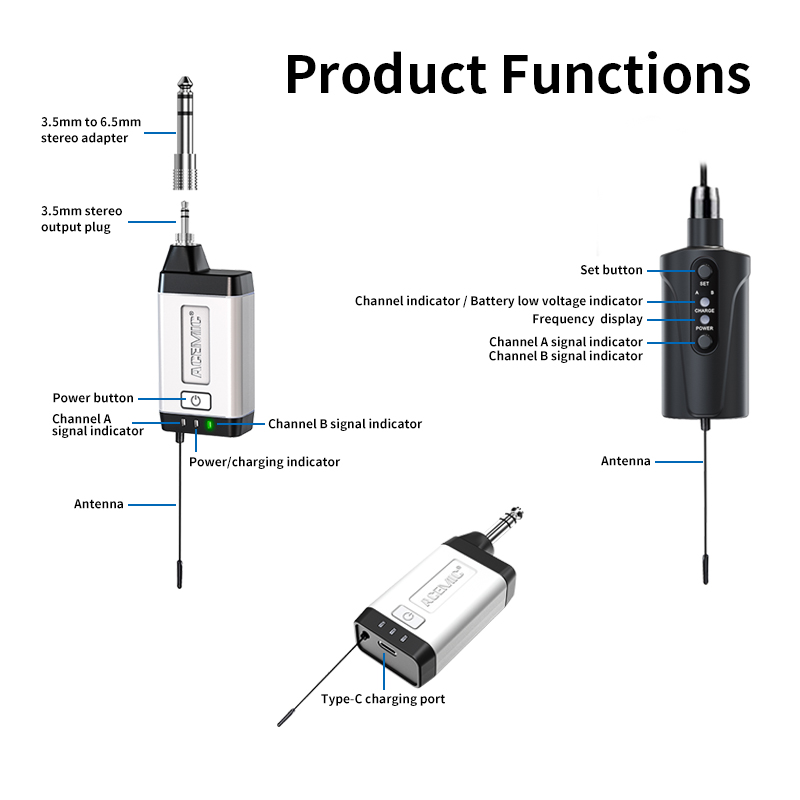 【You Will Receive】2 × UHF Transmitter, 1 × Receiver, 1 × USB charging cable, 1 × 6.35mm (1/4 inch) to 3.5mm (1/8 inch) converter, 1 × User manual, 1 ×  Aluminum alloy carrying case