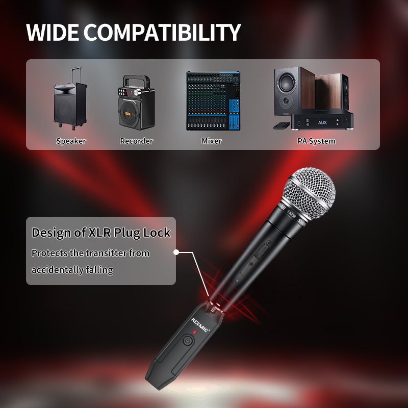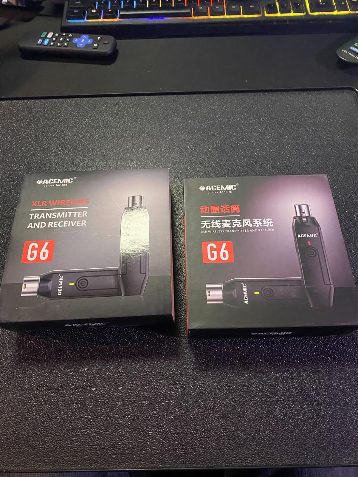 About this item【High Quality Sound Transmission】This wireless microphone adapter adopts a 2.4GHz wireless frequency band, which features high signal stability, low interference, and short audio delay. Less than 5ms Latency, no lag or signal loss, 24-bit Audio Resolution with a Sampling Frequency of 48KHz.【Designed for Dynamic Mic】The wireless microphone adapter XLR works with any dynamic microphone, audio mixer, PA system, and provides stable and reliable wireless transmission, letting you get rid of cables and make your professional microphones wireless. (Not Compatible with Condenser Mics)【Mute Function and 6-Channel】In power-on mode, a short press switches to mute and another short press unmute. The wireless microphone adapter has 6 channels and supports 3 sets of systems operating simultaneously without interference. One-to-one and no-interference. (TIPS: Watch the "Operation Guide" video on the product page if you are going to use 3 sets of G6 XLR wireless mic adapters.)【One-Button Operation】No need for complicated settings, the plug and play design is very convenient to use. The wireless microphone adapter XLR are automatically connected after power on. It is small and delicate; the transmitter weighs only 40g, and the receiver weighs only 43g.【8 Hours Continuous Use Time】With a built-in large capacity battery, this wireless microphone adapter can be continuously used for 8 hours after charging for 2-3 hours. The transmission range is up to 99ft (30m) in an open space. The lock design of the XLR plug protects the transmitter from accidental falling. It is ideal for gigs, venues, weddings, speeches, church, conferences, club MC, content creators, mobile DJ, and home studios, etc.