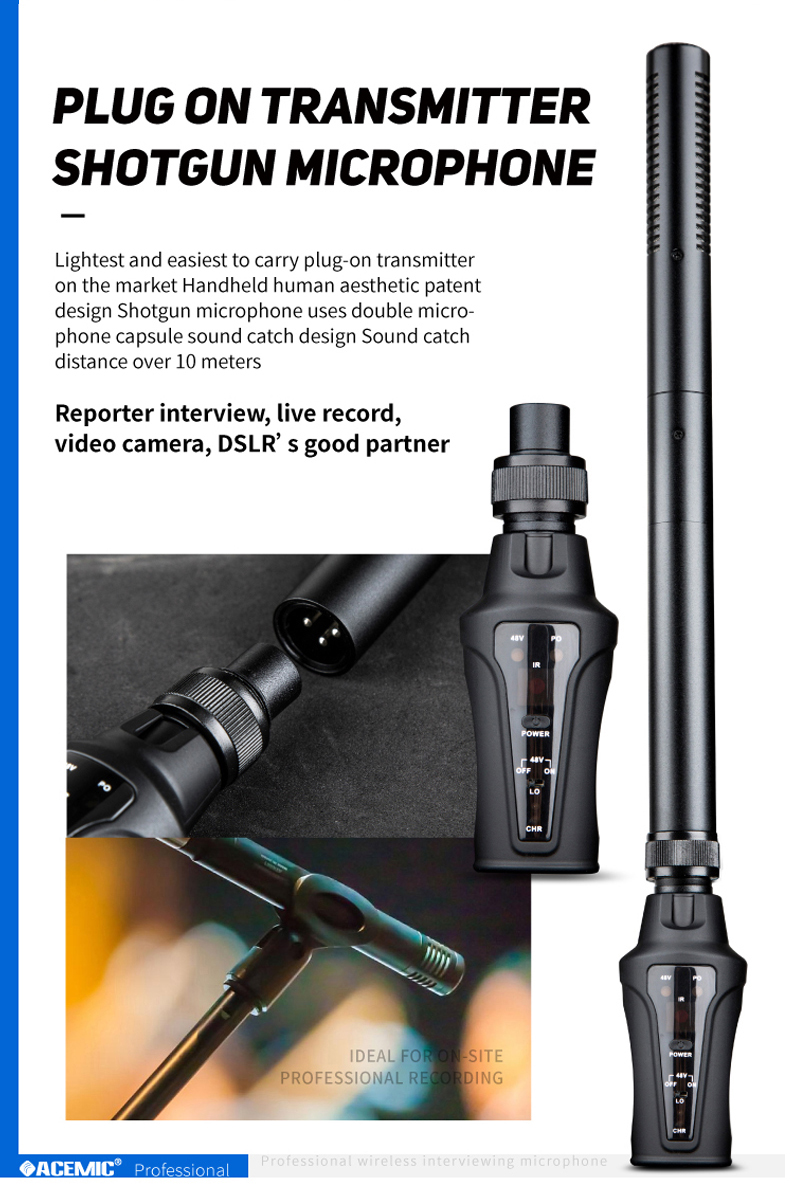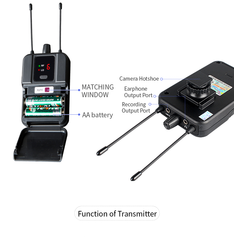 • Easy to Use: Transmitter with LCD display to show battery status, channels, etc. Come with a camera shoe mount, DSLR camera wireless microphone can be directly fixed to your DSLR camera and other shooting equipment.