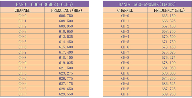 Frequency Range: UHF 660-690 MHz (606-630 MHz Optional)