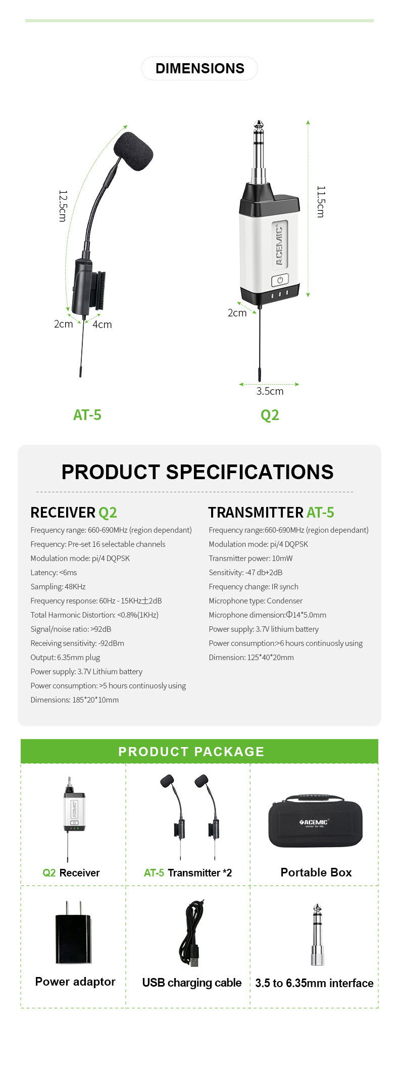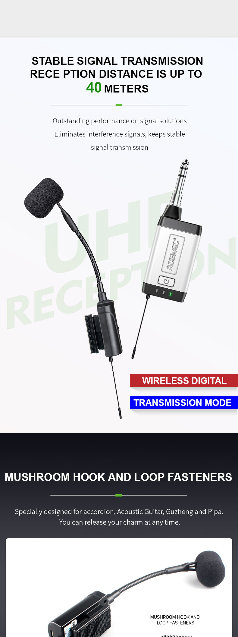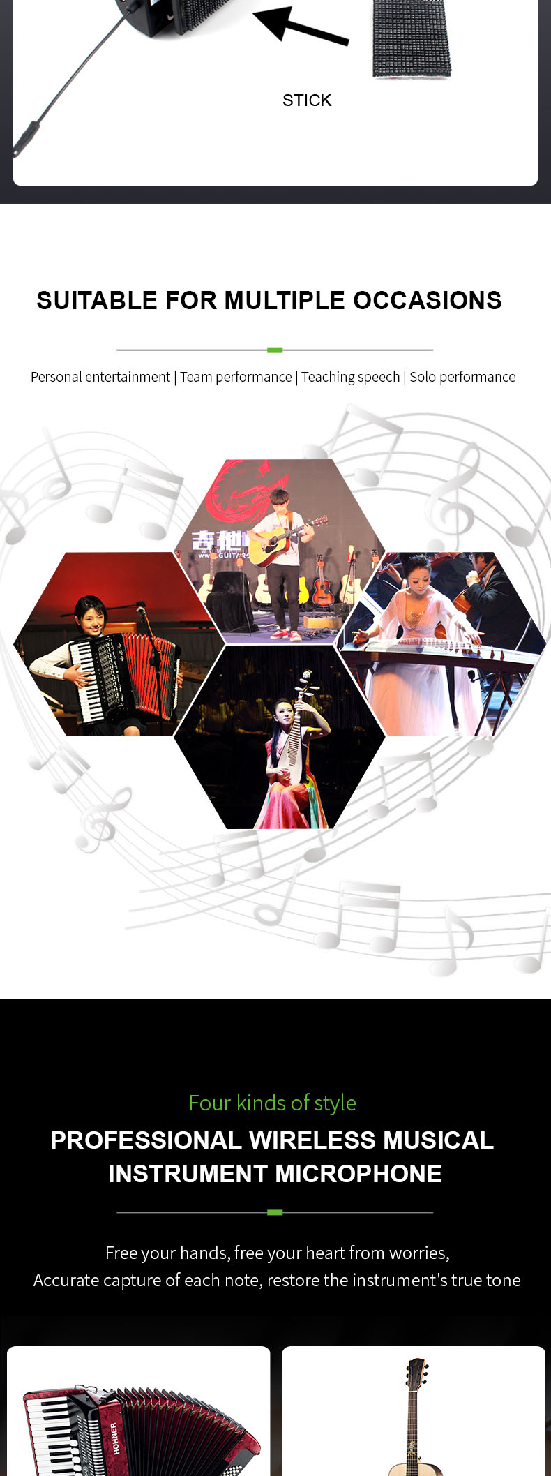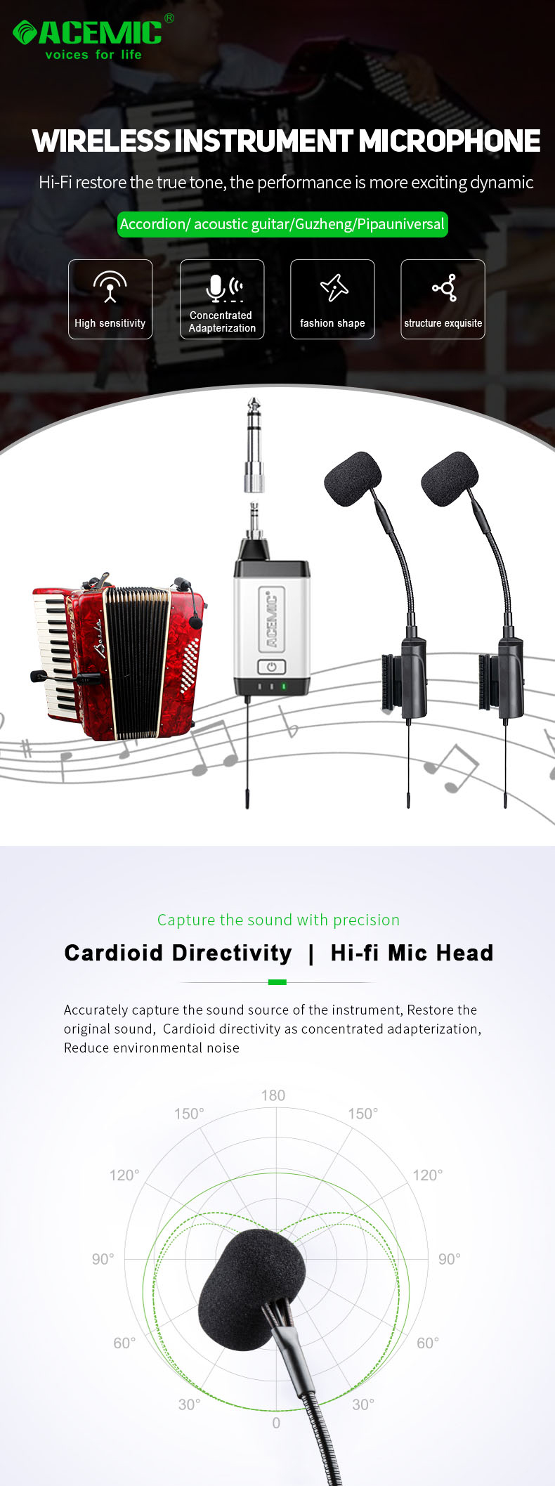 【True Wireless Connectivity】The wireless accordion microphone is specially designed for piano & button accordion with 2 microphone wireless transmitters. Cardioid polar pattern, reduce environmental noise.
