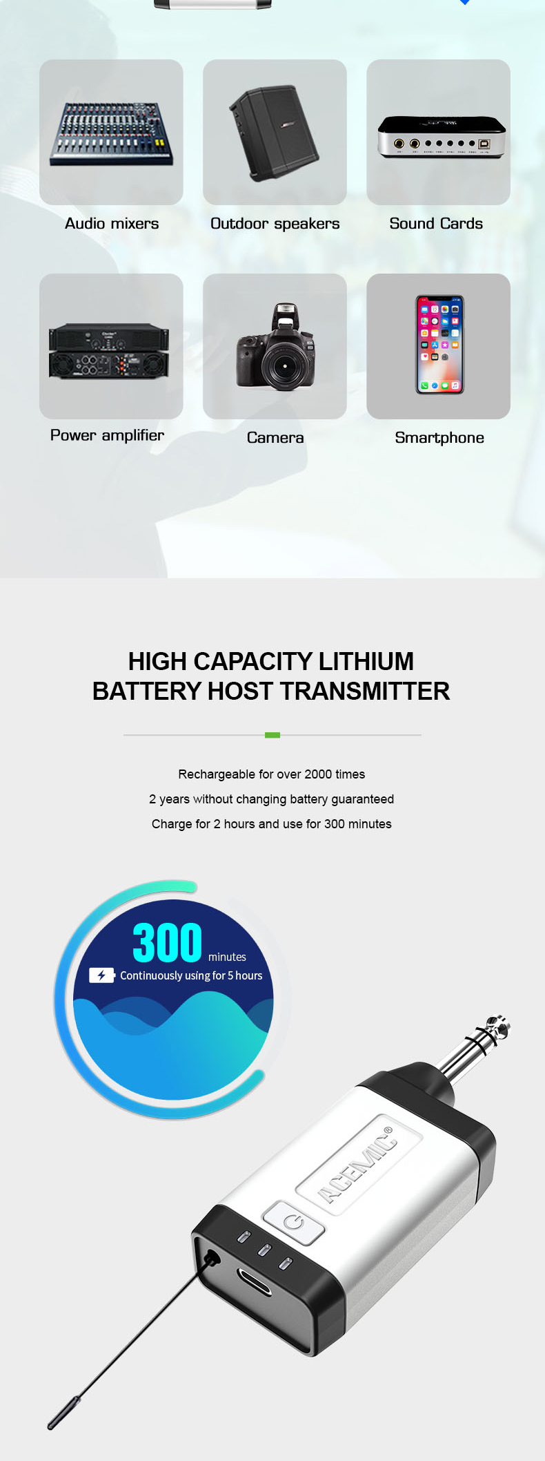 【Stable Signal Transmission】The wireless accordion microphone operating range up to 164ft (50 meters) line-of-sight. 20 UHF channels are optional, free from signal interference, frequency band 600-937 MHz.