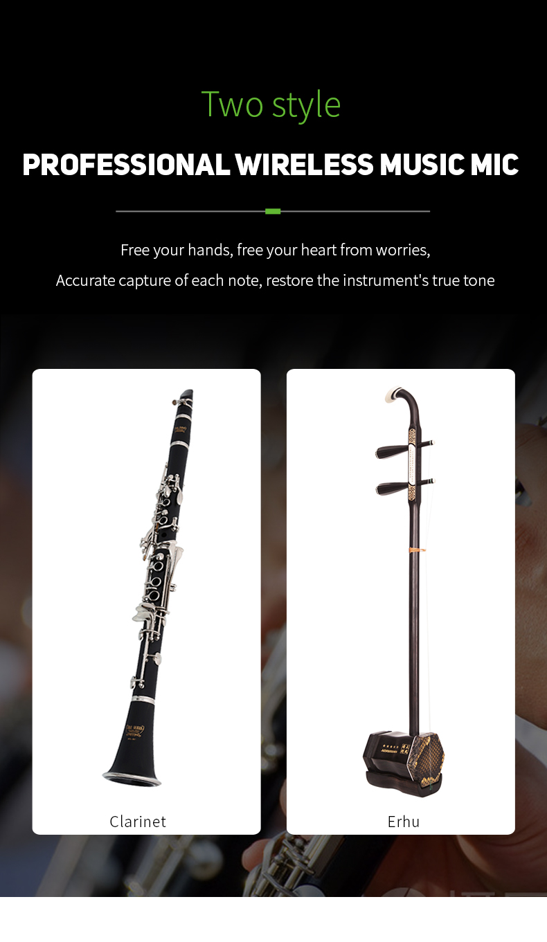 【High quality sound】The wireless clarinet microphone adopts condenser microphone core, so that the sound reproduction of the instrument can reach 99%.