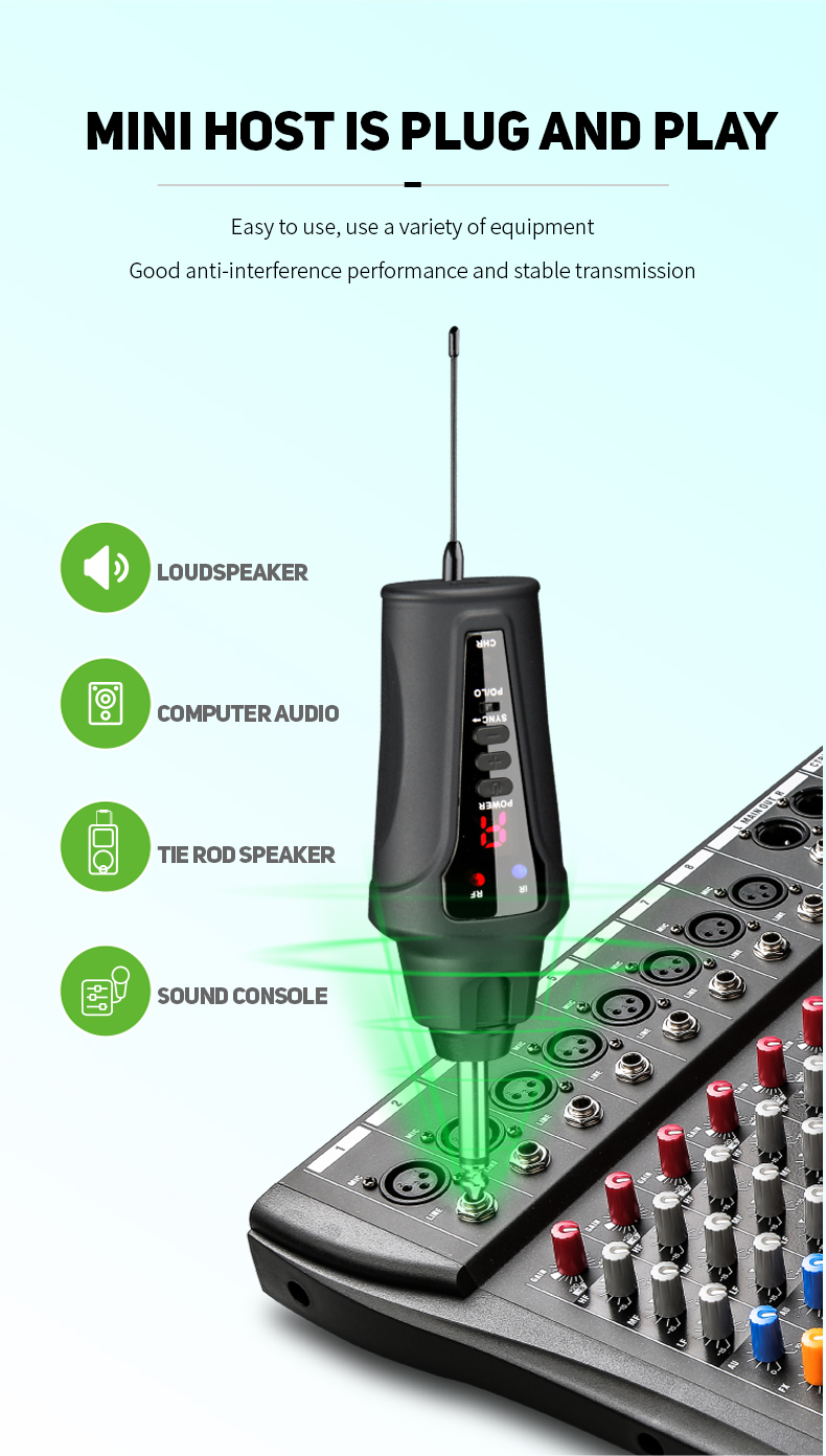 【Easy to use】The wireless flute microphone use the Velcro strap to fix the transmitter on the flute, plug the receiver into the MIC interface of the speaker, and then turn it on and use it.
