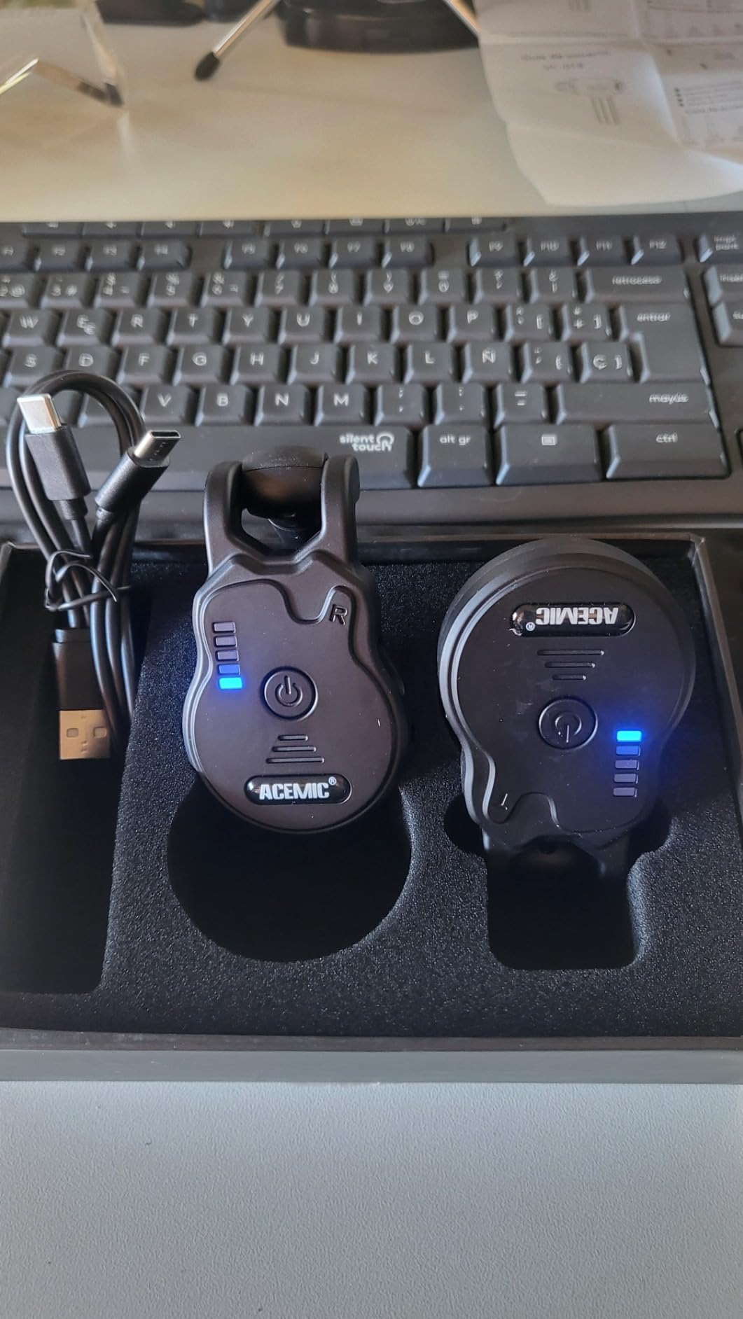 Systeme sans fils fiable et,pratique. Excellent système de guitare sans fil ! La qualité sonore est excellente, pas de distorsions et pas de latence. Une portée allant jusqu'à 30 mètres est idéale. La configuration est tres facile à réaliser et la longue durée de vie de la batterie le rendent très facile à utiliser. Autonomie d’environ 6 heures. Je recommande cet achat. Cette paire émetteur-récepteur (marquée T et R, respectivement) est facile à utiliser. La connexion s'effectue en quelques secondes, en suivant les instructions (mais c'est très simple). Le corps principal est réglable à l'aide d'une articulation par rapport à la prise, il est donc assez facile de trouver une position confortable une fois la prise de l'émetteur insérée dans la prise du corps de la guitare. Pas de latence ni de variation sonore appréciable, sauf lorsque vous vous éloignez de quelques mètres dans une pièce avec des objets placés entre l'émetteur et le récepteur (mais on parle toujours de choses négligeables, pour un usage amateur). Les piles (rechargeables avec un adaptateur secteur USB normal - double câble inclus) ont une durée de vie qui ne pose pas de problème. Habituellement, mes répétitions durent en général quatre heures ou un peu plus et la charge diminue légèrement. La semaine prochaine je le testerais en situation réelle lors d’un concert, je fais confiance à ce systeme sans fil.