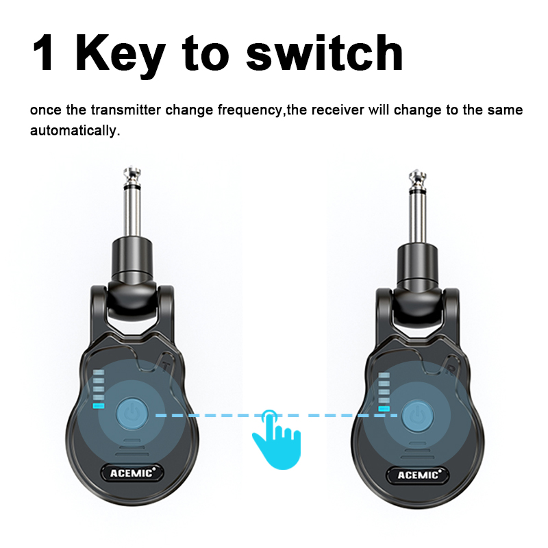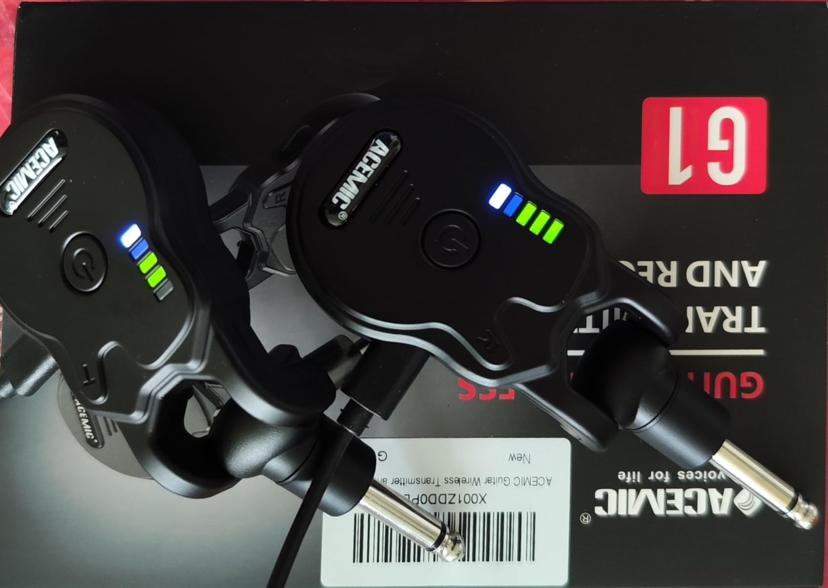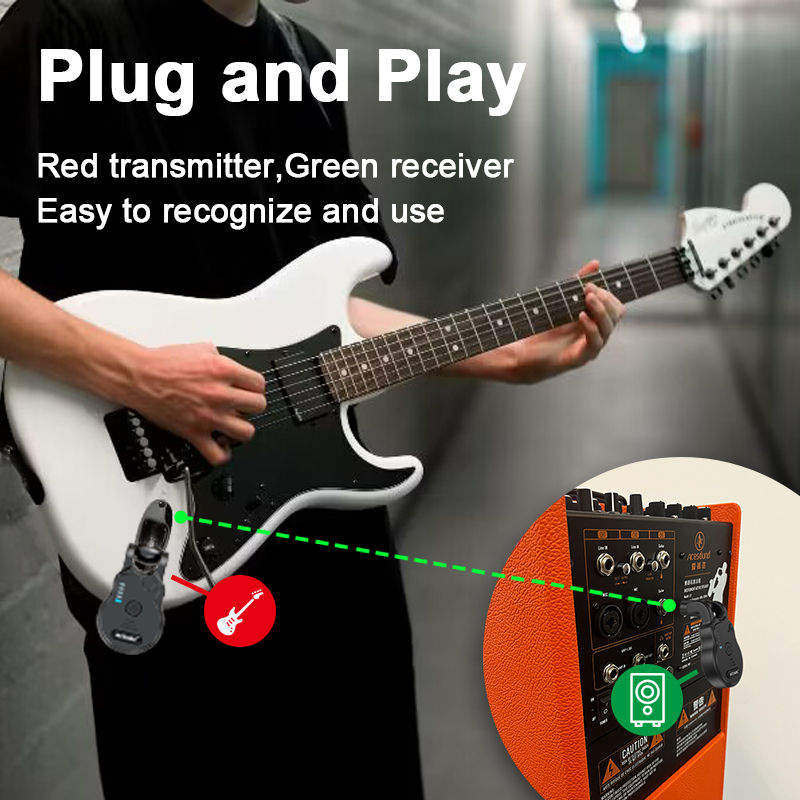 About this item:【2.4GHz Wireless System】The G1 wireless guitar system adopts the 2.4GHz wireless frequency band, which features high signal stability, low interference, and short audio delay. The wireless transmission range is up to 99 feet (30m).【Less Than 5ms Latency】The wireless guitar system has a broad 20Hz-20kHz frequency response, with less than 5ms latency, no lag, and no signal loss. It can transmit clear and high-fidelity sound signals without noise and delay, allowing you to get clear and high-quality sound from your guitar.【Mute Function and 6-Channel】In power-on mode, a short press switches to mute and another short press unmute. The wireless guitar system are automatically connected after being powered on. It supports up to 3 sets of wireless guitar systems operating simultaneously without interfering. One-to-one and no-interference. (TIPS: Watch the "Operation Guide" video on the product page if you are going to use 3 sets of G1 wireless guitar system.)【long-lasting Rechargeable Battery】With a built-in large-capacity battery, the wireless guitar system can be continuously used for 8 hours after being charged about 3 hours which is enough to enjoy the wireless world freely during your performance. The wireless guitar transmitter and receiver can be charged simultaneously using the dual-port USB charging cable included in the package.【Great Compatibility】Say goodbye to tangled cables! No need for any guitar cables, the 1/4" plugs can rotate 250 degrees, making them suitable for musical instruments with input jacks in different positions. Approved for worldwide use, the wireless guitar system is compatible with most electric guitars, electric bass guitars, electric-acoustic guitars, and other electronic musical instruments. It's an ideal gift for guitarists (Birthday gift, Father's Day, Graduation gift, etc.).