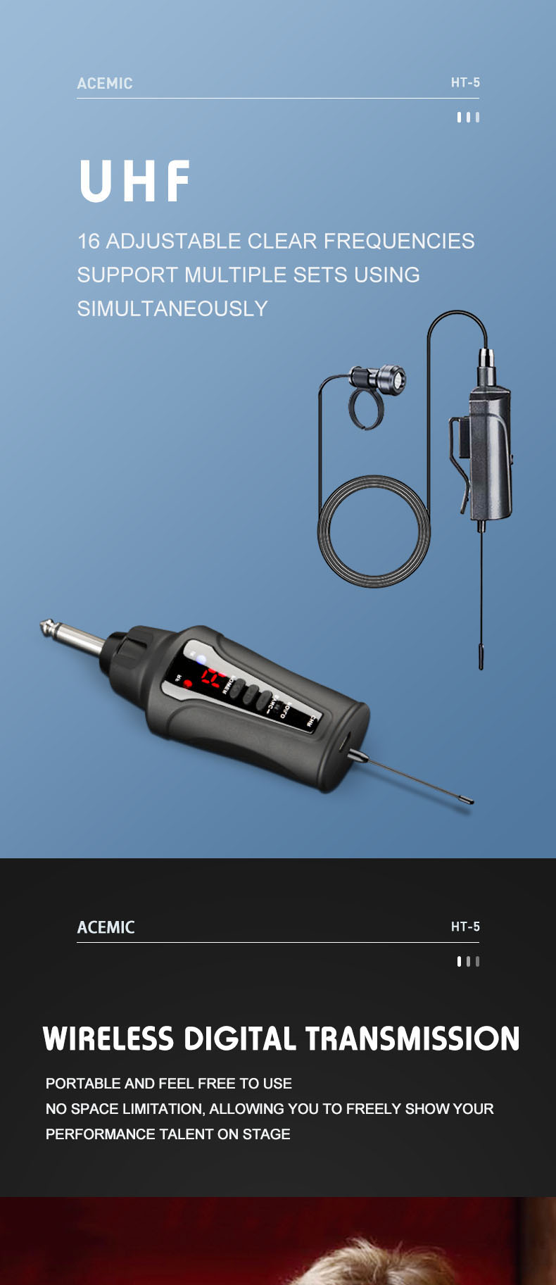 About this item:【UHF Stable Transmission】The wireless harmonica microphone utilizes UHF frequency and advanced digital audio transmission technology, featuring infrared automatic pairing, a 48kHz sampling rate, and an ultra-short audio delay. This ensures recording-quality sound transmission. The system offers stable transmission up to 164ft in open areas. (Note: Please ensure the antenna on the bottom of the receiver is installed before formal use.)【High Quality Sound Reproduction】The wireless harmonica microphone system with its built-in highly sensitive condenser mic, perfectly captures the instrument's soundtrack, delivering sound that is clearer and more realistic. It's ideal for harmonica. It includes a 6.35mm to 3.5mm adapter for compatibility with various active PA systems, active speakers, amplifiers, and audio mixers. Also included with a carrying case for easy and secure to travel with any show.【16 Adjustable Channels】This wireless harmonica microphone provides 16 preset groups of adjustable channels to address potential interference issues and supports up to 4 systems for use on the same occasion. To pair the systems, match the first transmitter with the first receiver by setting them to the same channel. When pairing the second set, it is recommended to select a channel number that is more than 3 channels apart from the first one. Follow the same method for subsequent systems until all four are matched.【Finger Ring Design】The wireless harmonica microphone system adopts finger ring design, with a small condenser mic propped up on the head of the ring. Hands free for your playing harmonica freely.【6 Hours Continuous Use Time】This wireless harmonica microphone equipped with a built-in rechargeable battery, offers 6 hours of continuous use after a 2.5 to 3-hour charge. Included in the package is a 2-in-1 charging cable for simultaneously charging both the transmitter and receiver. Ideal for gigs, weddings, church, teaching, band performances, pub shows, personal musician performances, and small concerts.