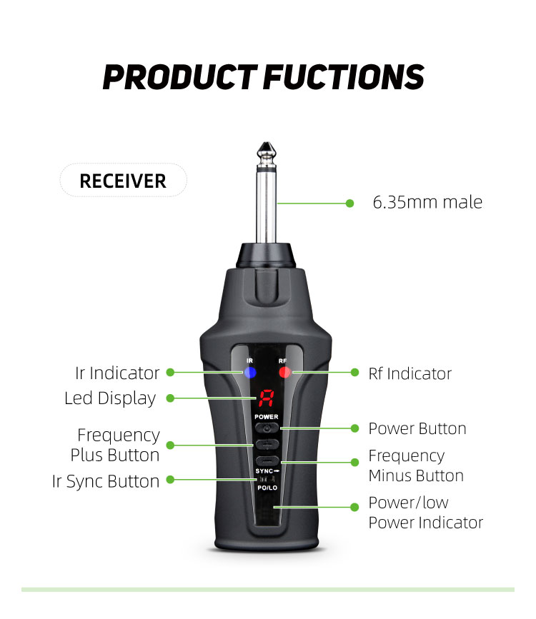 【UHF Stable Transmission】The wireless microphone for saxophone utilizes UHF frequency and advanced digital audio transmission technology, featuring infrared automatic pairing, a 48kHz sampling rate, and an ultra-short audio delay. This ensures recording-quality sound transmission. The system offers stable transmission up to 130ft in open areas. (Note: Please ensure the antenna on the bottom of the receiver is installed before formal use.)
