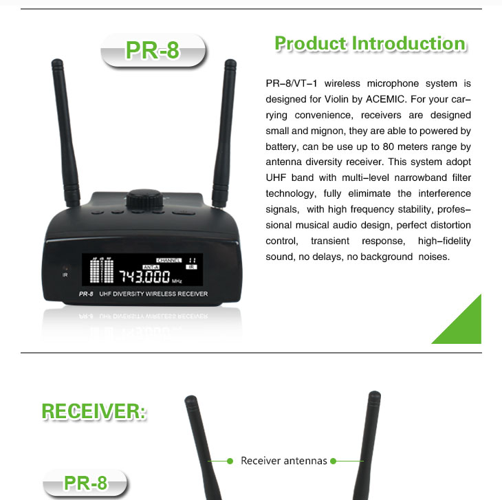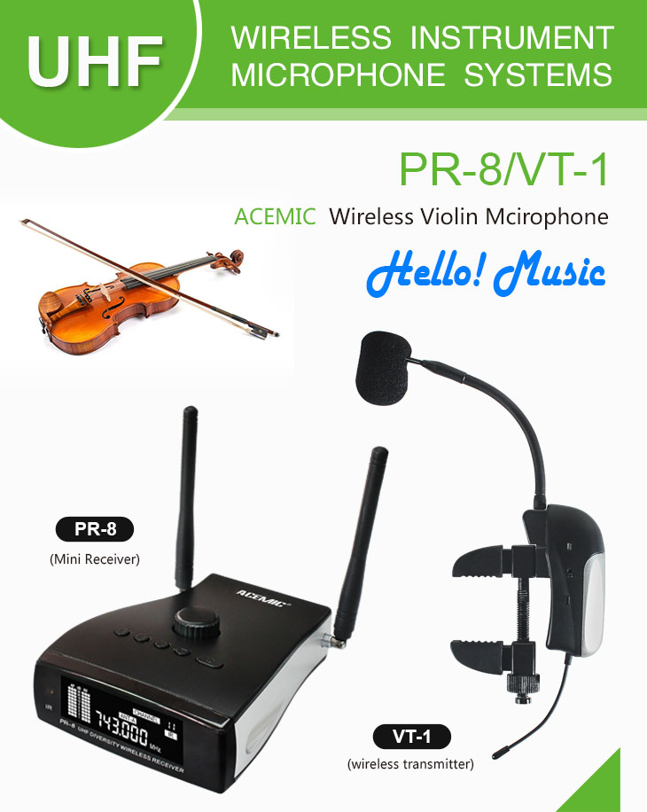 Wireless Violin Microphone System with 3 Echo Reverb Antenna Diversity