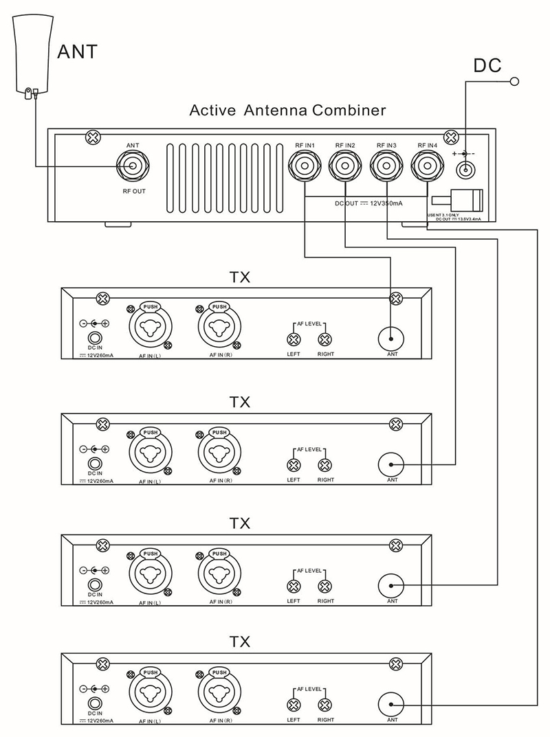 Active Antenna Combiner for Wireless In-Ear Monitor System AC-600