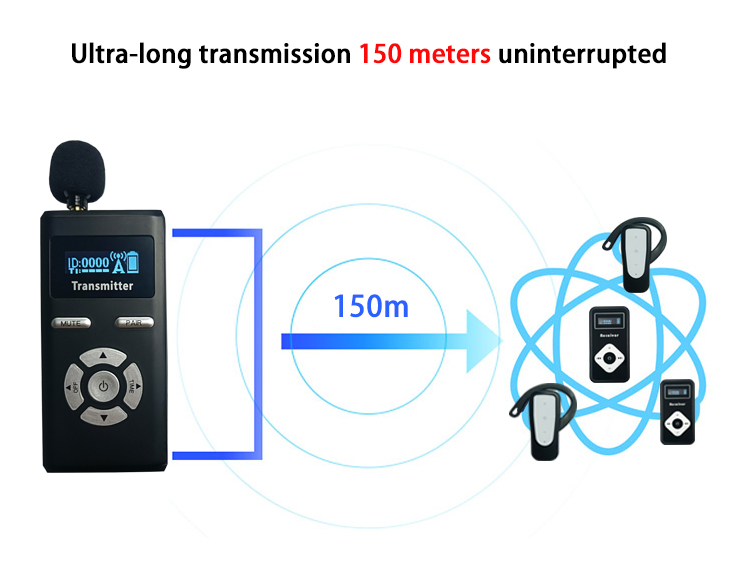 Long Transmission Range: The audio guide system talking range is up to 150 meters/492ft in open area.