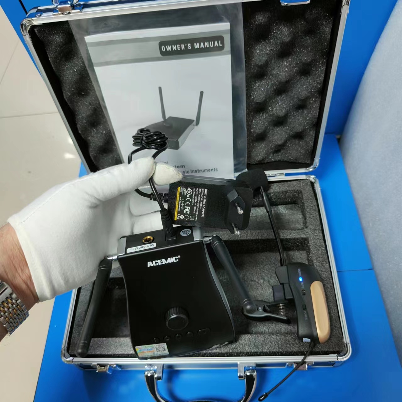 About this item• The saxophone wireless microphone frees yourself from cables and experience the ultimate freedom while performing! A reliable and compact system with professional features and exceptional audio quality that you can take anywhere with you.• Rugged, stompbox-size saxophone wireless microphone receiver can be placed anywhere you choose— even on stage next to your effects pedals. Can be powered either with included AC adapter or with 2 AA batteries for added portability.• Antenna Diversity (dual antenna system) guarantees the best possible range. UHF band operation and gold plated 1/4” output for optimal sound quality. The saxophone wireless microphone bright display with frequency indication (including group & channel), audio & RF meters and battery status.• Mini transmitter lamps connects to the bell of your horn – No chords necessary! The saxophone wireless microphone system features a MUTE switch for conveniently silencing the transmitter while the system is on to avoid popping sounds during performances.