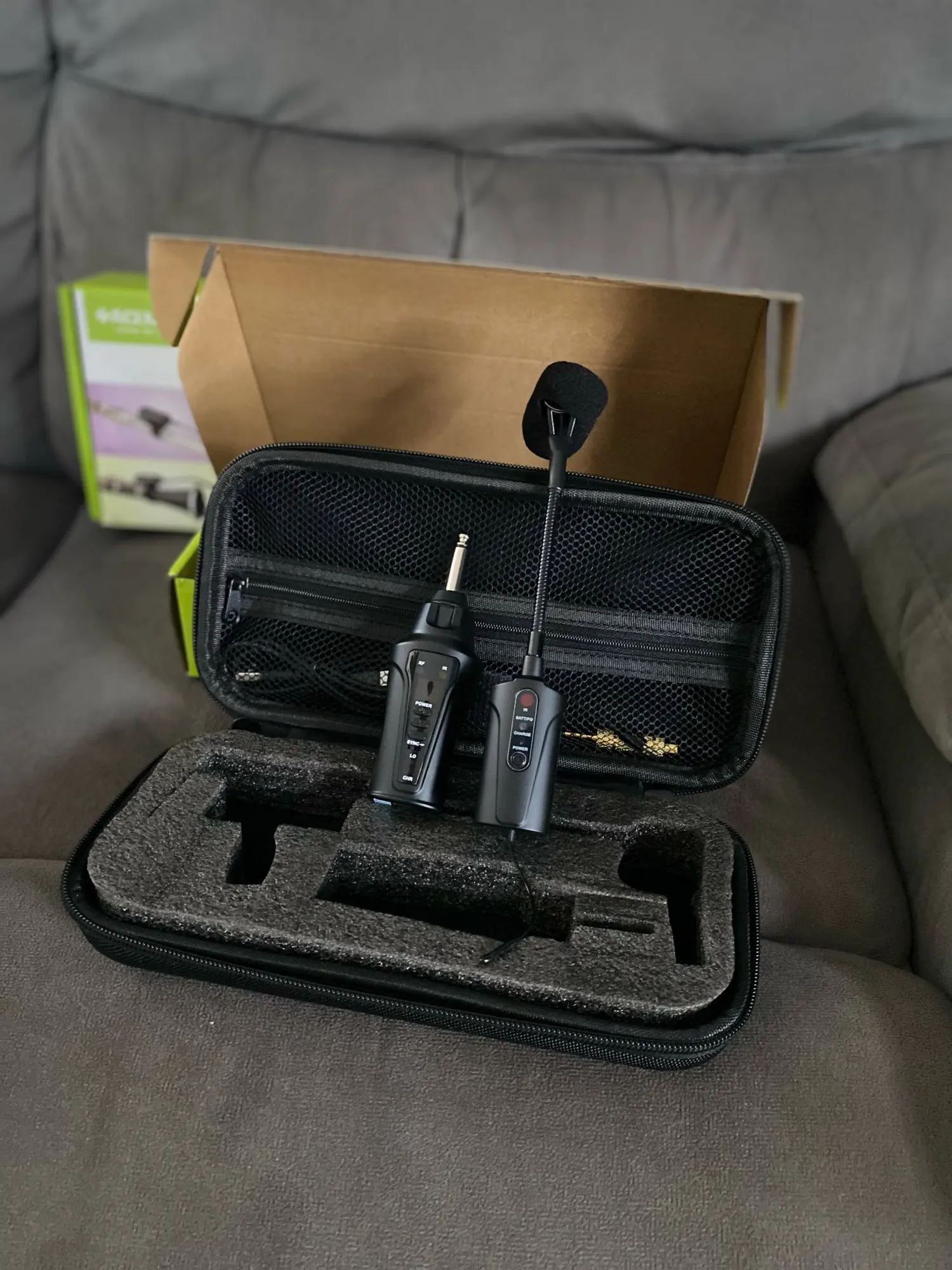 About this item:【164 Feet Wireless System】The violin wireless microphone utilizes infrared automatic frequency matching and UHF 600-928MHz digital audio transmission technology to provide freedom from the constraints of wired connections for traditional violin pickups. With an ideal operating distance of 164 feet and stable signal transmission.【99% Sound Reproduction】 VT-5 violin wireless microphone system ensures ultra-low audio latency (<6ms) and uses digital ID code technology to eliminate simultaneous frequency interference. It can use 4 microphone systems at the same time without crosstalk, with 16 presets With selectable frequency and unidirectional 0.55-inch condenser microphone core, musicians can choose and adjust different sound effects to capture the unique timbre and beautiful melody of the violin.【6-Hour Long-lasting Battery Life】Powered by a lithium battery, provides a long battery life of over 6 hours. The transmitter and receiver are equipped with built-in 750mAh batteries, which can be recharged up to 2000 times. Users can rely on the violin wireless microphone without worrying about running out of power.【0 Trace Spring Clamp】The violin wireless microphone system clamp features a design with 4 silicone pads and 1 rectangular sponge pad, providing stable clamping force and reducing noise interference. This design ensures that the instrument's surface remains undamaged and free from any marks.【Versatile Applications】Equipped with a 6.35mm plug (1/4-inch plug), violin wireless microphone can be directly connected to various devices such as mixing consoles, audio speakers, computer speakers, and amplifiers. It is suitable for teaching, personal entertainment, indoor and outdoor small-scale performances, providing convenient audio connections and delivering a high-quality audio experience.